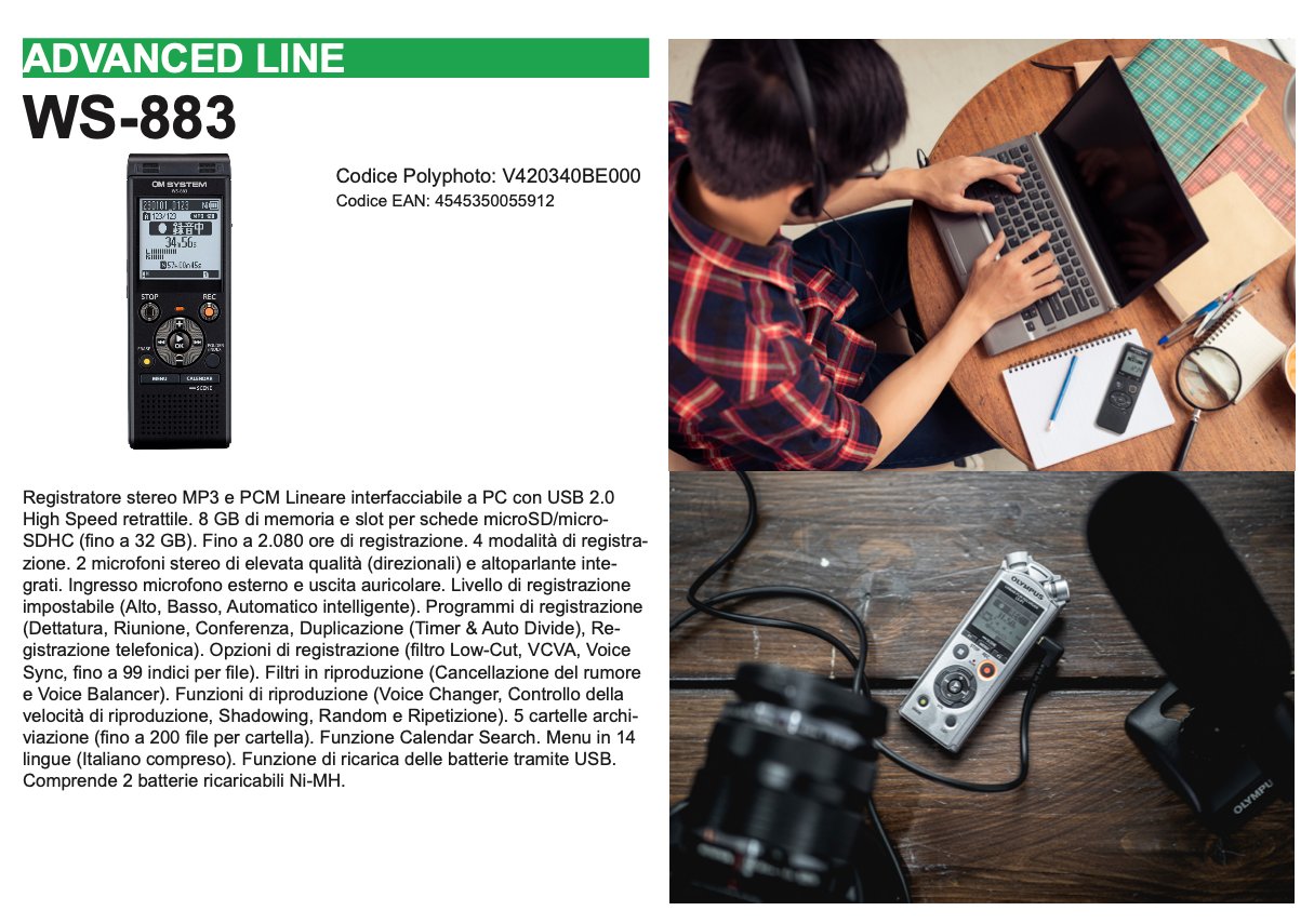 L'OM SYSTEM WS-883 è un registratore vocale stereo compatto e versatile, perfetto per catturare appunti personali e conversazioni in movimento. Il suo design innovativo e la sua tecnologia evoluta lo rendono ideale sia per gli studenti che per i professionali, garantendo ogni volta registrazioni di alta qualità.