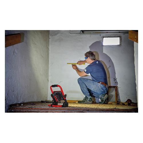 Il TC-CL 18/1800 Li a batteria Einhell porta la luce nell'oscurità:Alimentato da una batteria X-Change da 18 Volt, l'illuminazione ottimale è garantita da un potente LED.Mediante l'oscuratore girevole è possibile una regolazione graduale della luminosità e la testa della luce ruotabile a 360° garantisce un'elevata flessibilità.La pratica impugnatura facilita il trasporto, il supporto pieghevole consente inoltre di risparmiare spazio.Un robusto gancio di fissaggio supporta l'uso universale.Batteria e caricabatteria non in dotazione.Sono acquistabili separatamente, per esempio con il pratico Starter Kit
