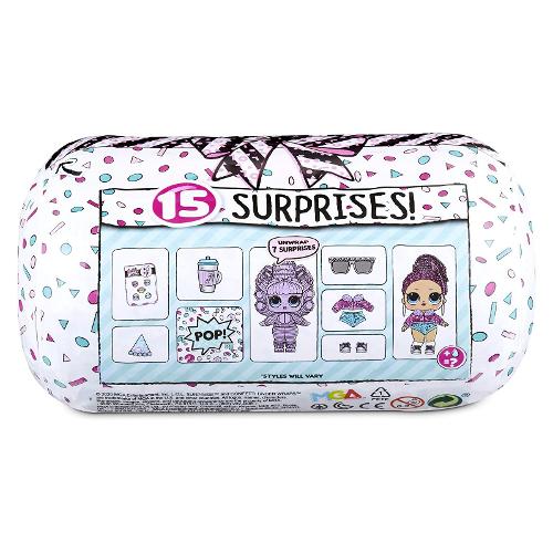 Scopri una bambola LOL Surprise ripubblicata dalla serie Eye Spy. Dai da mangiare o fai il bagno alla bambola per rivelare una sorpresa d'acqua. La tua bambola piangerà o sputerà? La pallina di coriandoli può essere rimontata e fatta scoppiare tutte le volte che vuoi. Ogni Confetti Under Wrap viene fornito con 15 accessori tra cui foglio di adesivi, borsa per feste, bottiglia coriandoli, costume, accessorio, Vestito, Scarpe