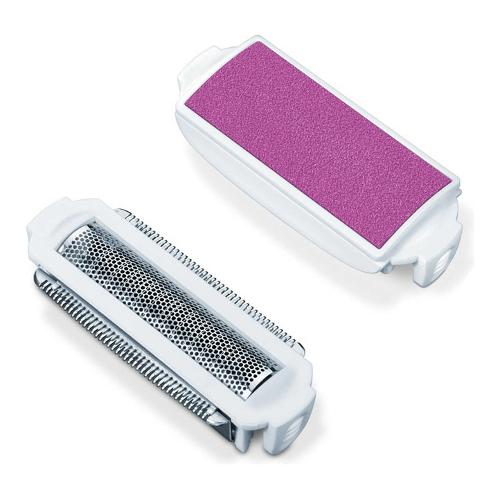 Accessorio per la rasatura e il peeling per rasoio elettrico donna HL 36. Contiene due lamine con blocchi lame e un accessorio per il peeling. Sostituzione consigliata: ogni 12 mesi. La lamina antiallergica previene le irritazioni cutanee.