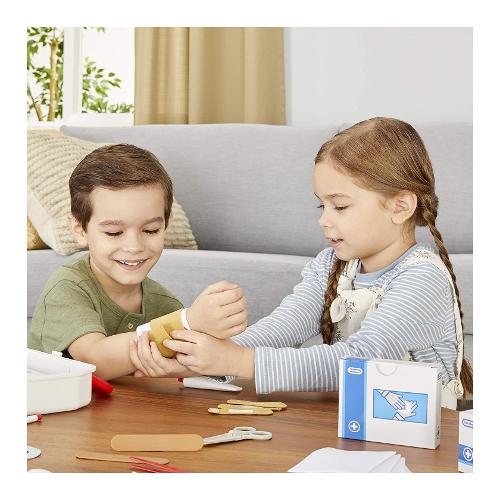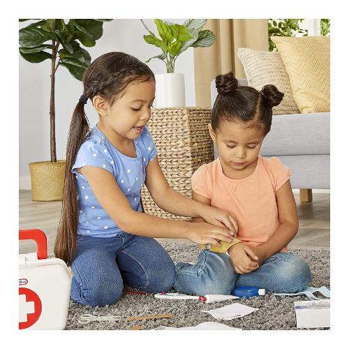 Nelle situazioni in cui c'è bisogno di aiuto. Giocare con Little Tikes® e fingere di prendersi cura degli altri sviluppa l'empatia e il senso di responsabilità. Grazie al manuale di primo soccorso, i tuoi bambini riusciranno a capire come intervenire nelle situazioni in cui c'è bisogno di aiuto. Nella confezione troverai 25 accessori presenti realmente al pronto soccorso tra cui una mascherina, un gel disinfettante per le mani, una fascia di supporto per il braccio rotto, un tubetto di crema, il manuale di primo soccorso, le pinze, le forbici, un impacco di ghiaccio, bastoncini per la gola, un termometro, 9 cerotti, 2 rotoli di bende, 5 garze e una custodia dove