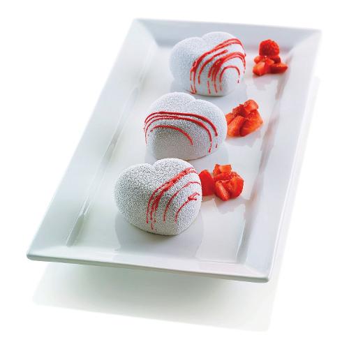 Pensato per i piccoli grandi amori, con cuoricino il romanticismo farà capolino nella vostra tavola. Divertitevi a decorare e personalizzare le vostre dolcissime creazioni da regalare alle persone amate! Ciascuna cavità dello stampo è provvista di una rivoluzionaria bordatura interna che conferisce una leggera forma arrotondata alla base delle vostre preparazioni. All'interno della confezione è inclusa un'esclusiva ricetta.