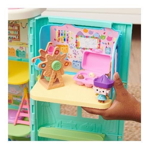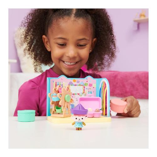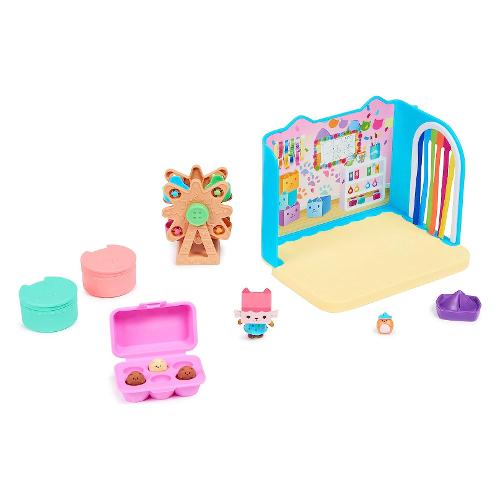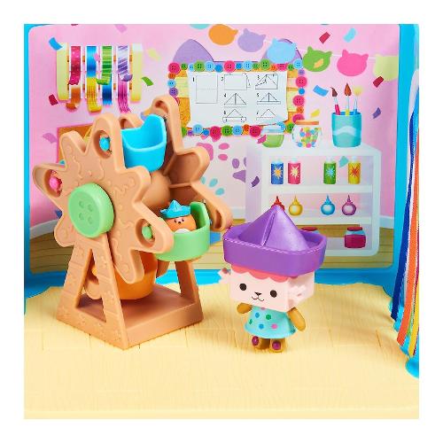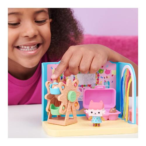 Preparati per gat-tastiche avventure giocando nella stanza baby box craft-a-rrific. Questo set di gioco deluxe di gabby's dollhouse ti farà divertire grazie ai dettagli spassosi ed entusiasmanti tutti da scoprire che danno vita alla magica stanza della serie. Include il personaggio gatto baby scatola da collezione, con i suoi saltellanti amici cricegatti nel loro contenitore di cartone per le uova, oltre a una ruota panoramica funzionante, una porta della camera a strisce color arcobaleno e due divertenti scatole con sorpresa con un giocattolo all'interno. Aprile per scoprire gli accessori misteriosi di questo set: una barchetta giocattolo e un cricegatto che può unirsi a baby scatola e girare sulla ruota panoramica. Divertiti utilizzando la stanza craft-a-riffic insieme a siregatta e al suo bagno relax e bellezza e alla camera da letto dolci sogni di pillow cat (ognuno in vendita separatamente) e inseriscili all'interno della gattastica casa delle bambole di gabby (in vendita separatamente) per costruire tutto l'universo di gabby's dollhouse. Ma manca ancora una sorpresa: scansiona il codice qr all'interno di una delle scatole con sorpresa per sbloccare un premio speciale nell'app gratuita gabby's dollhouse (disponibile su ios e android). I giocattoli, i peluche, i personaggi e i set di gioco della collezione di gabby's dollhouse sono educativi, nonché ottimi regali per bambini dai 3 anni in su, in quanto aiutano a espandere la loro immaginazione attraverso un gioco di finzione entusiasmante e creativo.