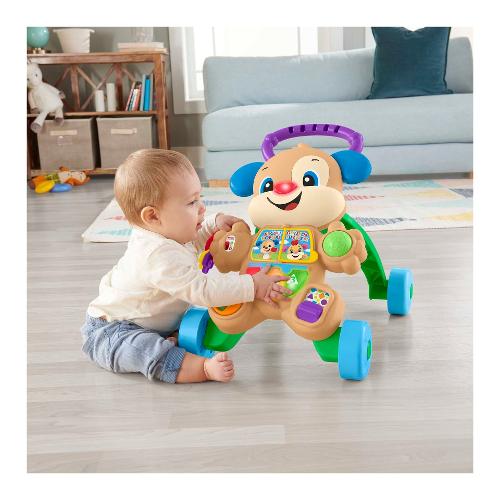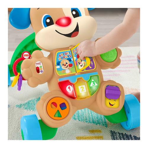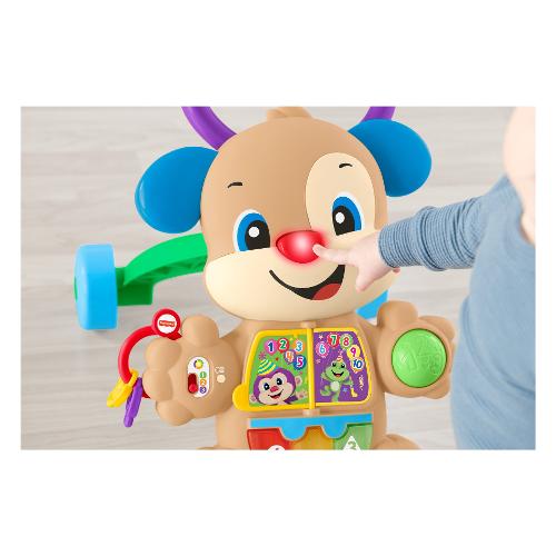 Forza! Andiamo a farci un giro! Il cagnolino primi passi ridi & impara® smart stages® è l'amico perfetto per il tuo piccolo e offre entusiasmanti attività manuali per i baby dog-sitter, tantissime frasi incoraggianti e un supporto per quando il bambino inizia a camminare. Quando i bambini crescono, i contenuti educativi smart stages® insegnano l'alfabeto, le forme, i colori, i numeri e persino alcune parole in inglese! I muscoletti si allenano alla grande quando il piccolo da seduto cerca di afferrare e interagire con le attività del cagnolino, per poi alzarsi in piedi e camminare con un pratico supporto. I bambini scoprono il concetto di causa ed effetto mentre scoprono come attivare la musica e le frasi premendo i pulsanti o spingendo il cucciolo.