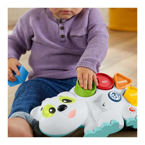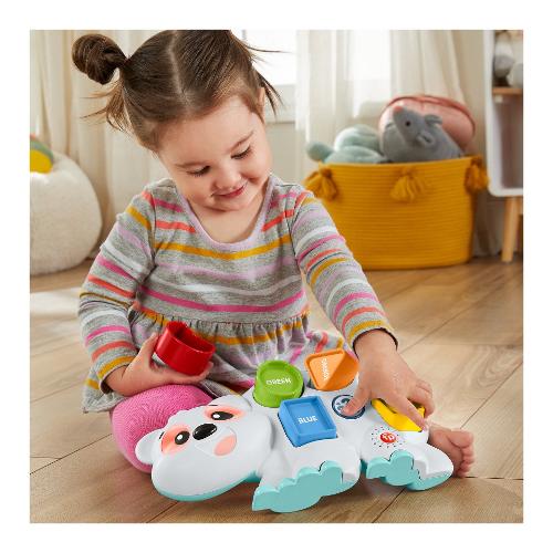 Il giocattolo fabietto orsetto forme e colori™ parlamici™ da fisher-price® è un simpatico amico con puzzle interattivo che si illumina con divertenti canzoncine, suoni e frasi quando i bambini abbinano e ordinano le 5 forme avanzate nelle rispettive fessure. Per un gioco su misura per la fase dei primi passo, i bambini possono premere il tasto quiz per divertirsi con spassosi giochi didattici con il loro amico polare. Quando avvicini fabietto orsetto forme e colori™ ad altri parlamici™, si illuminano, parlano, cantano e suonano insieme!