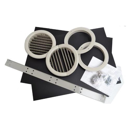 Il kit comprende: coppia flange interne ø160 mm, coppia di griglie pieghevoli esterne ø160 mm, coppia tappi.