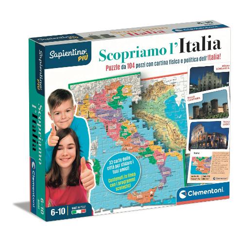 Un fantastico gioco 2 in 1 per approfondire la conoscenza dell'italia. Un puzzle fronte retro con la cartina dell'italia fisica e politica e un divertente gioco di carte per sfidare gli amici. Un gioco per mettersi alla prova e arricchire le conoscenze dei più importanti monumenti e di tutto quello che ci rende fieri del nostro made in italy.