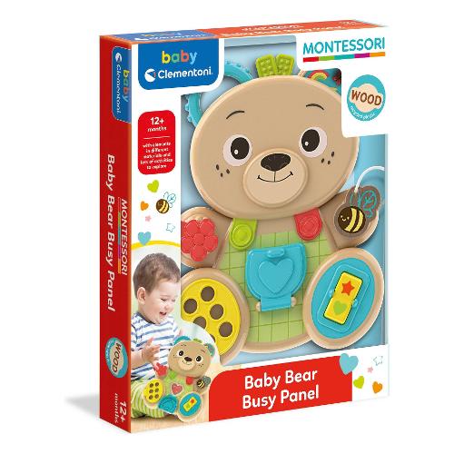 Un simpatico orsetto realizzato in plastica riciclata con elementi in legno, materiali diversificati e tantissime attività tutte da esplorare. Un gioco ispirato alla pedagogia montessoriana ricco di meccanismi ed attività studiati per allenare la manualità ed esercitare la capacità di concentrazione del bambino. Grazie alla presenza di materiali diversi l'orsetto stimola la sensorialità, guidando il bambino nell'imparare a manipolare oggetti di vita quotidiana. Un pannello (busy board) montessoriano, rivisitato con l'inconfondibile ed empatico design baby clementoni. Un progetto ideato in italia e adatto a stimolare i sensi dei più piccoli.