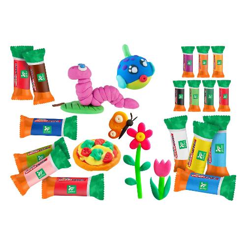 Set composto da 36 paste da modellare da 50 grascuno per un totale di 1,8 kg di puro divertimento. 20 colori assortiti.