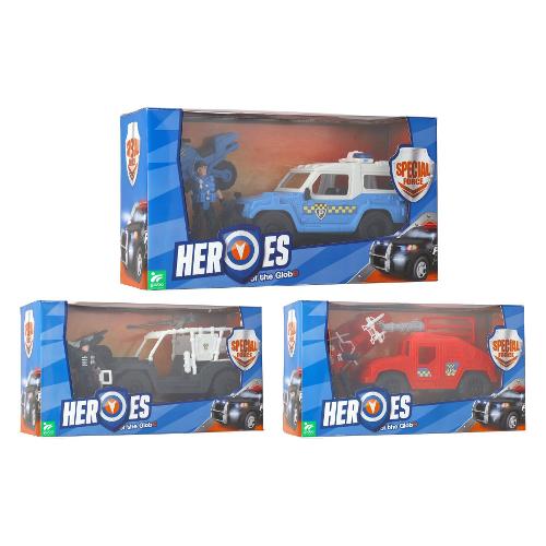 Scegli il playset preferito tra l’assetto swat, quello della polizia o dei pompieri. Incluso in ciascun playset un eroe e due mezzi di trasporto per svolgere le missioni al meglio. Tanti dettagli realistici da scoprire per iniziare a vivere la tua avventura con i nostri eroi. Disponibili 3 assortiti.