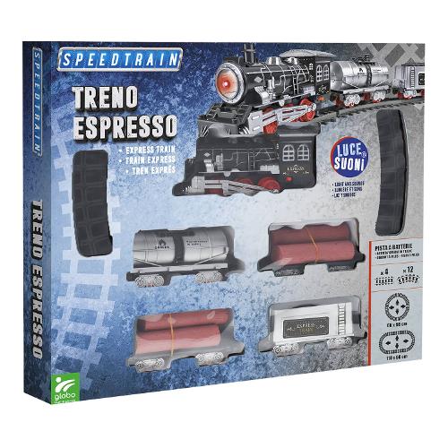 Incredibile set completo di trenino, dai dettagli realistici, e pista su rotaia lunga 110 cm. Assembla le rotaie per creare il circuito preferito, fai partire il treno espresso, composto da una locomotiva e 4 vagoni, e parti per il mondo della fantasia. Luci e suoni integrati renderanno la tua esperienza di gioco ancora più coinvolgente. Funziona a batterie.
