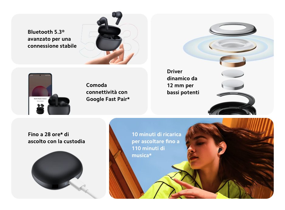 Auricolari microfono bluetooth REDMI BUDS 4 Active Tws Black BHR6992GL