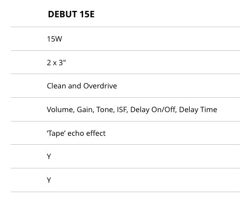 Il tuo primo amplificatore dovrebbe suonare in modo fenomenale. Progettato meticolosamente dallo stesso team di ricerca e sviluppo del Regno Unito degli amplificatori valvolari di fascia alta di Blackstar, il design analogico semplice da usare di Debut 15E offre toni puliti e overdrive incredibilmente ricchi e naturali. L'ultima esperienza di gioco per ogni chitarrista che inizia il suo viaggio.