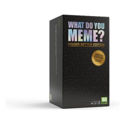 What do you meme? bigger better edition what do you meme?, il celebre party game per adulti appassionati di meme, in un'edizione ancor più grande e completa! bigger better edition aggiunge 90 carte didascalia inedite, per un totale di 450 carte da abbinare alle carte immagine. chi, fra i giocatori, creerà il meme più divertente? La confezione comprende 450 carte didascalia 75 carte immagine 1 cavalletto