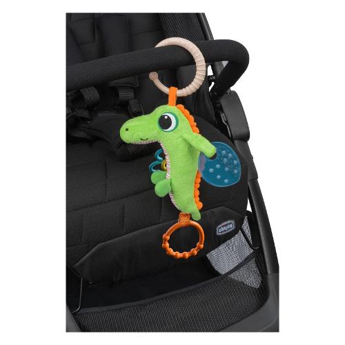 Un divertente sonaglio chicco a forma di coccodrillo in tessuto. Tirando l'anello arancione si attiverà un sorprendente effetto vibrante. Questo gioco chicco include di tre elementi leggeri e facili da afferrare dai più piccoli - 2 foglie in plastica dura colorate e un elemento in plastica morbida con delle gocce d'acqua. Scuoti il coccodrillo e riprodurrà simpatici e divertenti suoni, per intrattenere il tuo bambino. Grazie all'anello universale integrato, puoi fissare facilmente il sonaglio a carrozzine, passeggini o seggiolini auto