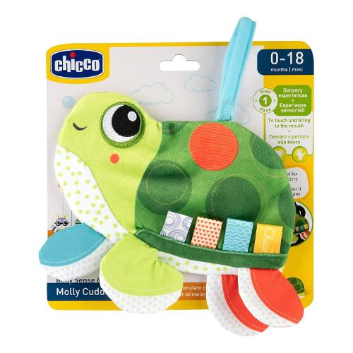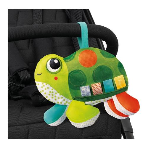 Molly la tartarughina è una morbida e leggera tartaruga colorata realizzata con tessuti diversi e pieni di etichette tessili. è un giochino piatto e leggero, davvero facile da impugnare. Con molte alette di tessuti diversi per stimolare la curiosità, abilità visive e manuali. Con una chiusura in velcro per attaccare il gioco al passeggino. Lavabile in lavatrice