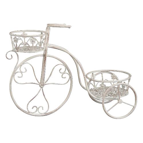 Porta piante ferro bicicletta 2P (63x25x46cm) Bianco anticato