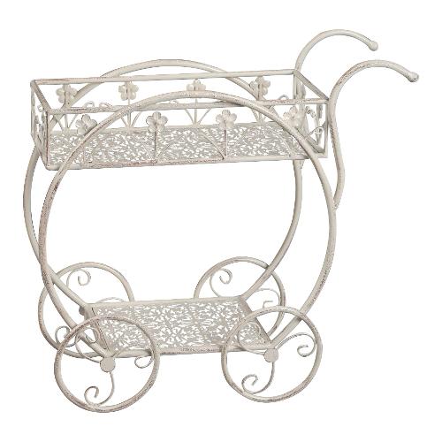 Porta piante ferro carrellino con ruote (54x22x51cm) Bianco anticato