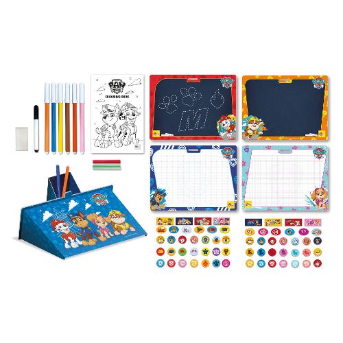 Nello zainetto di paw patrol, troverai un ricco kit creativo per imparare a disegnare, passo dopo passo, insieme ai tuoi personaggi preferiti. Segui le indicazioni sul libretto e disegna comodamente sulle lavagnette scrivi e cancella usando il leggio da costruire. All'interno della confezione troverai anche tanti stickers, pennarelli e gessetti colorati.