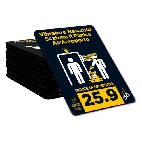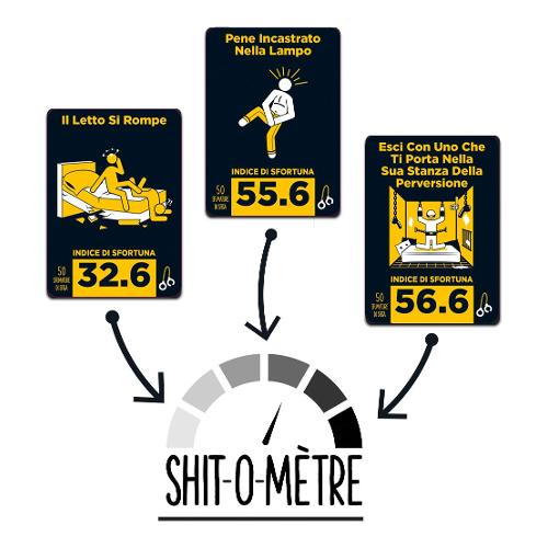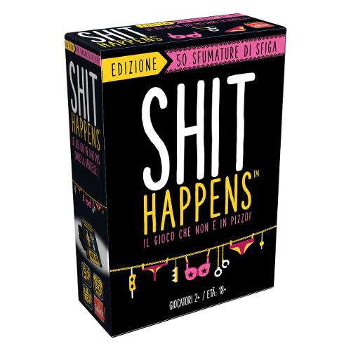 Shit happens - 50 sfumature di sfiga è il party game a luci rosse della linea shit happens. Rigorosamente per giocatori dai 18 anni in su, ti mette di fronte alle situazioni che sfuggono di mano in ambito intimo. Prepara i fazzoletti per le risate, o per nasconderti dai tuoi amici.Giocare A shit happens - 50 sfumature di sfiga è molto semplice: non devi fare altro che collezionare le carte sulle sfortune assurde relative ai momenti più intimi della tua vita . Rifletti bene con ogni carta e classificala nel modo giusto sullo shit-o-metro, una scala di sfortune assurde relative ai momenti più intimi della tua vita appositamente studiata da un team di esperti. Posiziona correttamente la carta per vincerla! Quando raggiungi 10 carte hai vinto! La confezione contiene: 200 carte con tragiche situazioni hot, manuale di istruzioni.