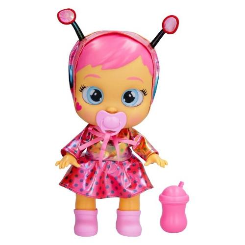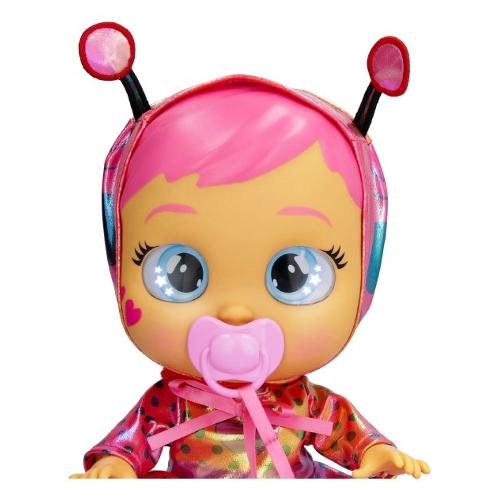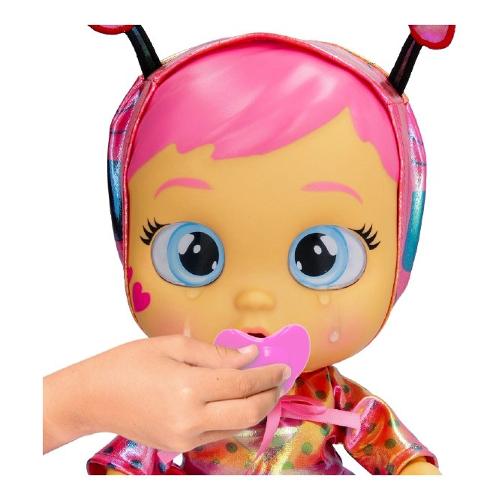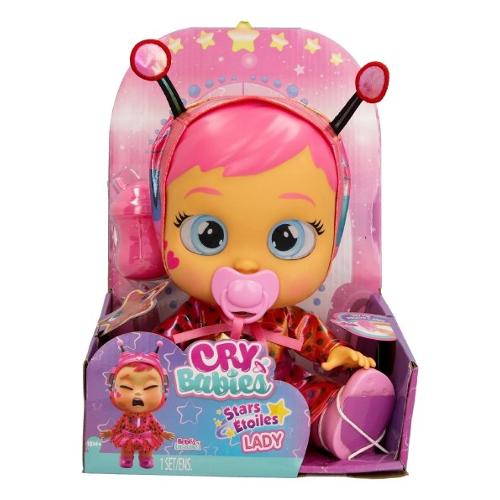 La nuova cry babies star babies brilla come stelle! Indossano uno speciale vestito iridescente! Hanno una faccia più morbida e capelli dipinti. Come tutti i cry babies, piange lacrime vere senza il suo ciuccio. Rimettil e smetterà di piangere. Inoltre, quando togli il ciuccio come per magia le stelle nei suoi occhi si illumineranno ogni volta che piange. Include anche un biberon per calmarla!