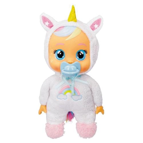 La cyr babies goodnight dreamy è la compagna perfetta per al nanna! Super morbida per tante coccole e bellissima. Per non bagnare li lettino, piange lacrime led con suoni realistici di bebè quando el togli li ciuccio. Quando glielo rimetti, li suo viso si illumina come una tenera e rassicurante luce notturna. Se le premi il pancino, suona anche 10 minuti di dolci ninna nanne. Magici sogni d'oro con dreamy!