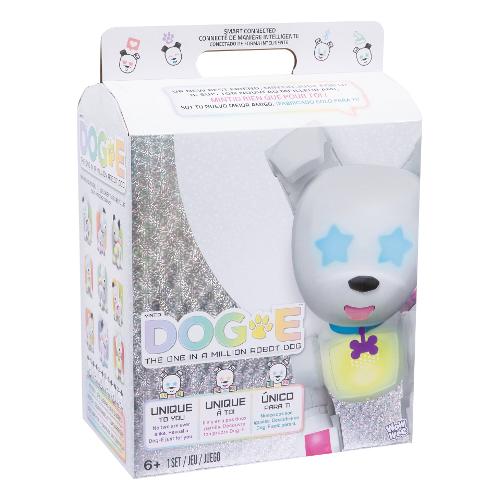 Dog-e è un cane robot per tutta la famiglia! Parla, risponde e reagisce al tocco, ai suoni e al suo giocattolo.