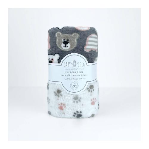 Coperta carrozzina Pile 100% poliestere double face (90x65cm) Orso grigio PFCO