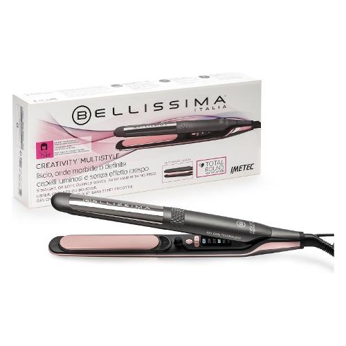 Bellissima Creativity Multistyle è la piastra con superficie esterna riscaldata e tecnologia a ioni per creare capelli lisci e onde morbide o definite senza effetto crespo. Le soft waves covers aumentano il diametro della piastra e permettono di creare facilmente onde morbide. Il rivestimento in ceramica arricchita con microparticelle di diamante e con cheratina favorisce la protezione dal calore, assicura una perfetta scorrevolezza e dona luminosità e vitalità ad ogni passata.