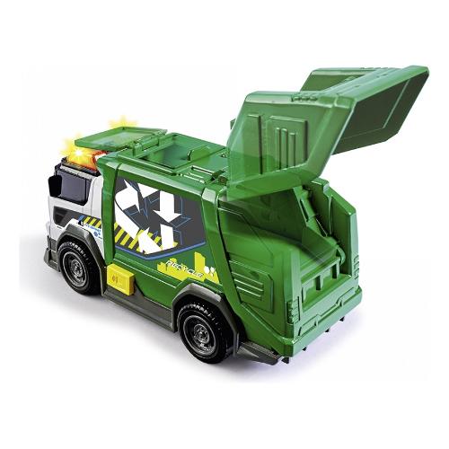 Il veicolo dei rifiuti presenta effetti sonori realistici e una spia arancione per avvisare gli altri utenti della strada.