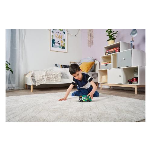 I rifiuti possono essere scaricati attraverso il portellone. Riciclare non è mai stato così divertente! Grazie alle ruote girevoli, il veicolo dei rifiuti