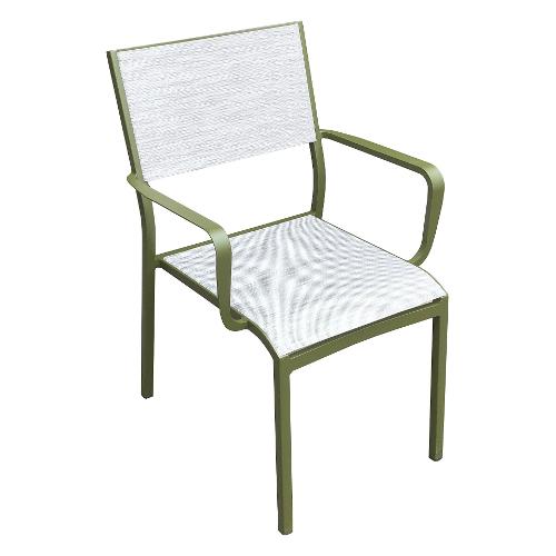 Sedia con braccioli alluminio, textilene CAROL Verde oliva e Grigio chiaro LY AC 062