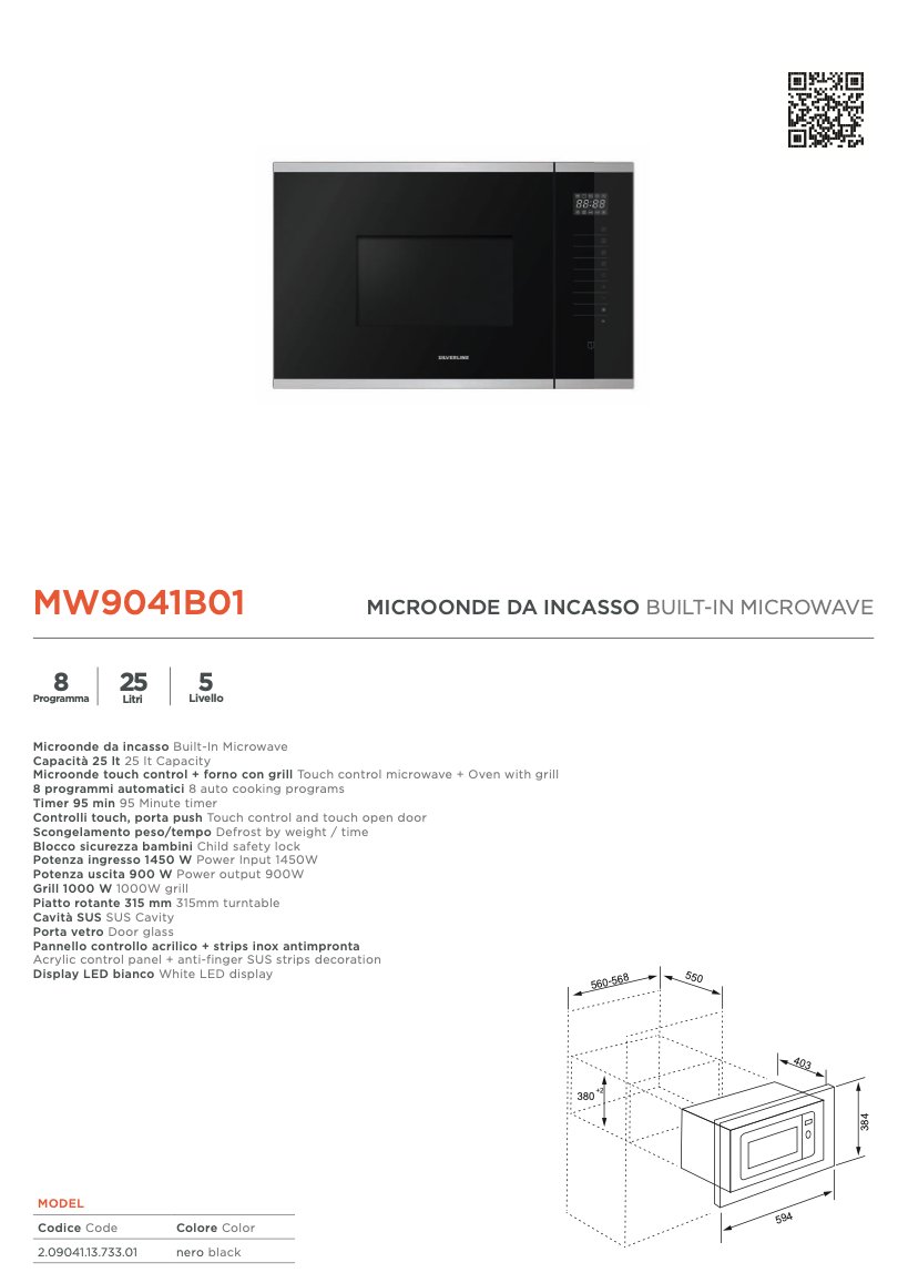 Microonde incasso ( (25Lt) ) MW9041B01 Black (60cm) 900W
