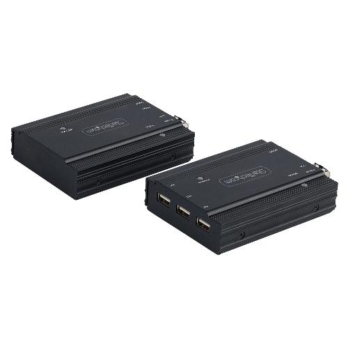 Questo kit extender KVM HDMI consente di utilizzare una tastiera, un mouse e un monitor per controllare in remoto qualsiasi computer su una connessione point-to-point. Insieme a uno switch KVM, l'extender console KVM è utilizzabile con più computer. È dotato di tre porte HID USB che consentono di collegare i dispositivi HID, come la tastiera e il mouse.