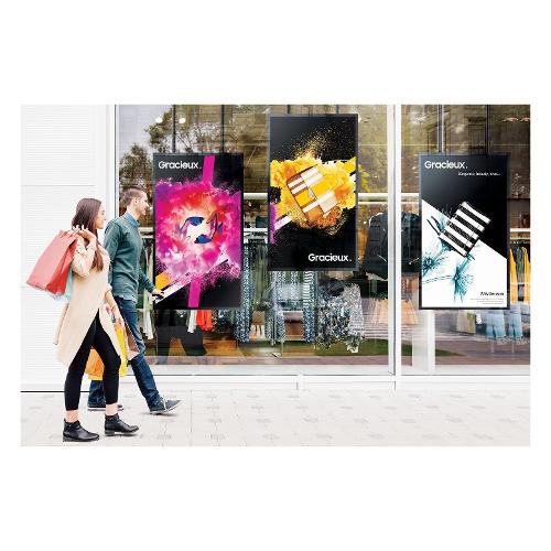 I display Samsung della serie OMN sono progettati appositamente per gli allestimenti delle vetrine. Le loro immagini nitide e luminose attirano e coinvolgono i passanti, facendo aumentare le probabilità di una visita in negozio.