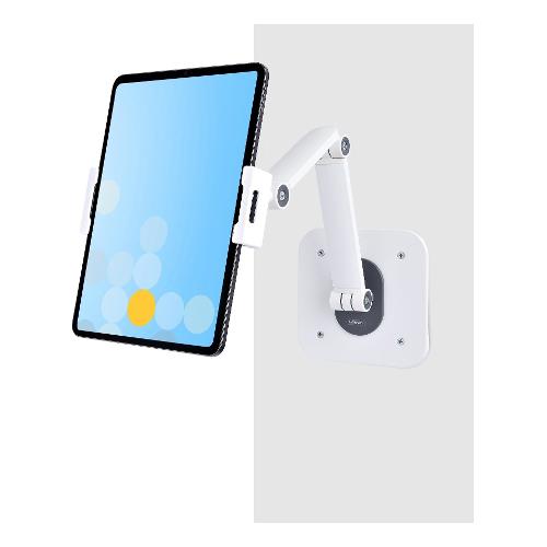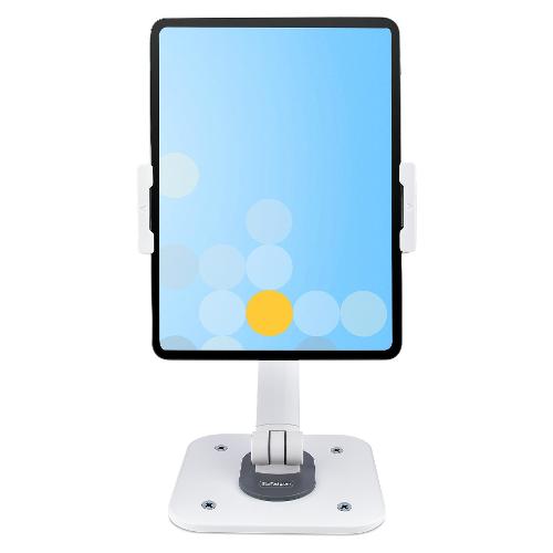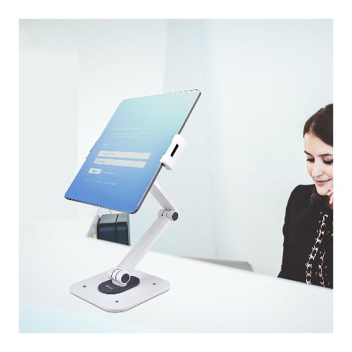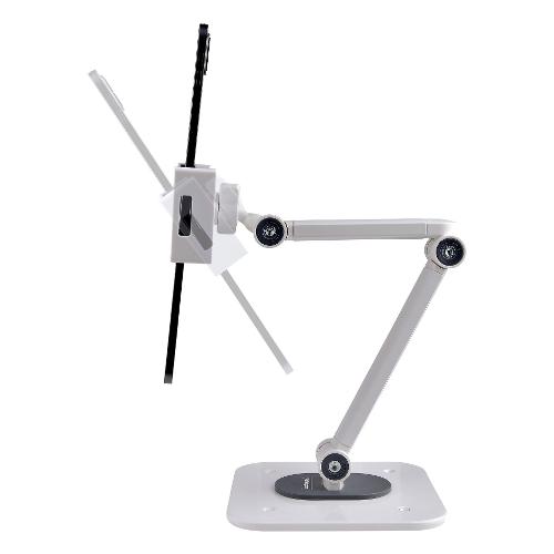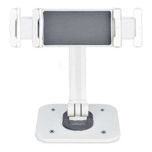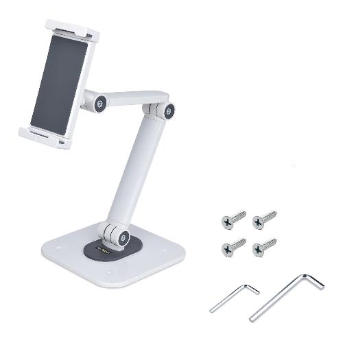 Questo supporto per tablet ergonomico e regolabile consente di integrare senza problemi un tablet in una workstation. La posizione del tablet all'interno del morsetto può essere modificata in base alle esigenze di visualizzazione dell'utente. Il leggio per tablet è dotato di cuscinetti antiscivolo sul morsetto e sotto la base per proteggere il dispositivo e il piano di appoggio. La base può essere fissata su una scrivania utilizzando le viti per legno 4,2x19 mm incluse. Il morsetto supporta tablet con larghezza compresa tra 12,7-22,7 cm cm, spessore di 1 cm e con peso massimo di 1 kg. Il supporto per tablet viene spedito completamente assemblato per una rapida implementazione in ambienti rivolti ai cliente e in applicazioni Point-of-Sale.