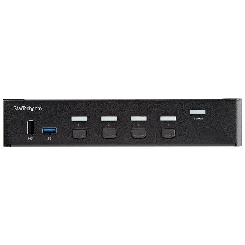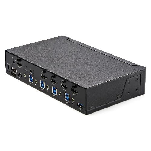 Questo KVM switch a 4 porte consente di sfruttare le funzionalità dei display digitali 4K (60 Hz) e di controllare fino a quattro computer collegati.