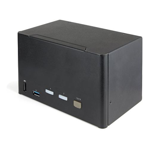 Questo switch KVM a 2 porte consente di sfruttare le funzionalità dei display digitali 4K (60 Hz) e di controllare fino a due computer collegati.