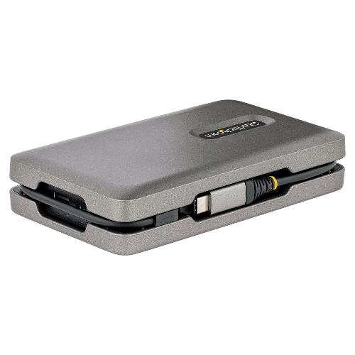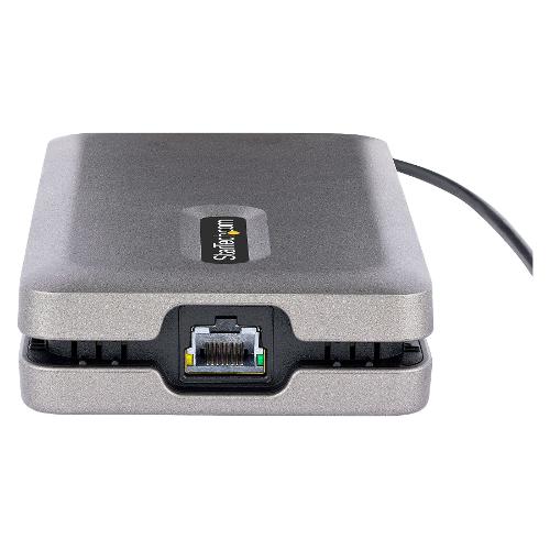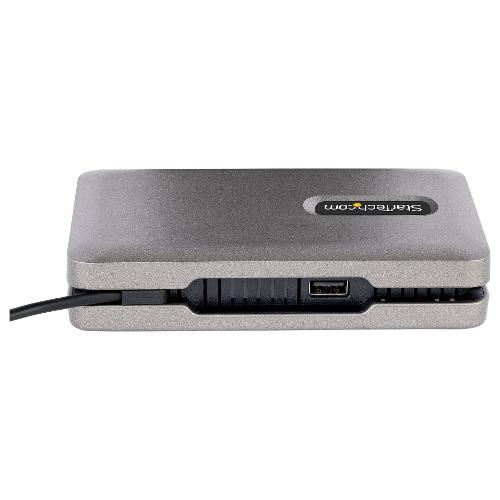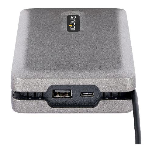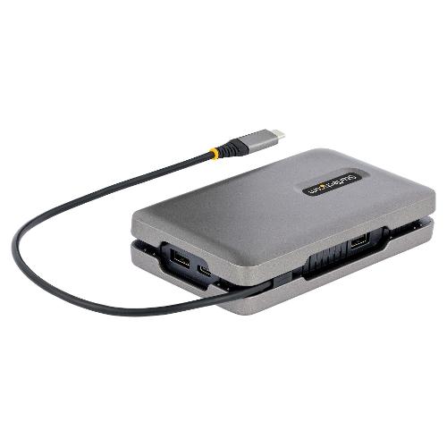 Questo Adattatore Multiporta/Docking Station USB-C con DisplayPort 1.4 (Alt Mode) e Multi-Stream Transport (MST), dispone di tre tipologie di uscita video (HDMI, VGA e video USB-C) per gestire una workstation a monitor singolo o multiplo. La porta video USB-C supporta USB 3.2 Gen 2 (10 Gbps) con 10 W di potenza, per collegare un monitor o una periferica USB-C. Inoltre, la Docking Station dispone anche di un hub USB-A 3.2 Gen 2 (10 Gbps) con 2 porte, una porta Gigabit Ethernet e fornisce una ricarica avanzata tramite il Power Delivery (PD) 3.0 pass-through. L'adattatore multiporta si può collegare a un laptop con porta USB-C o Thunderbolt 3/4 utilizzando il cavo USB-C da 25 cm integrato.