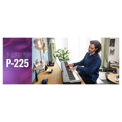 Rispetto al suo predecessore, il P-225 offre un design del corpo molto più corto e sottile con uno stile compatto. Questo modello ha un bell'aspetto da qualsiasi angolazione lo si osserva e si adatta bene a qualsiasi stanza. Per ottenere uno chassis del prodotto più piccolo, abbiamo sviluppato la nuova tastiera GHC (Graded Hammer Compact) (88 tasti), che è costruita secondo standard senza compromessi e offre la stessa sensazione di suonare un pianoforte acustico.