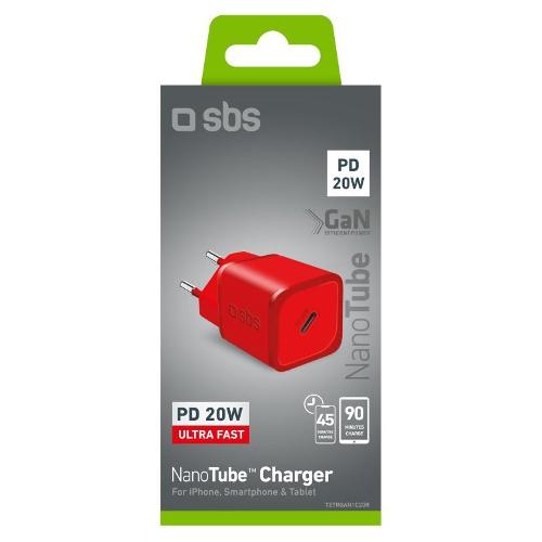 Caricabatterie USB Type-C NANOTUBE 20W Power Delivery Rosso TETRGAN1C20R