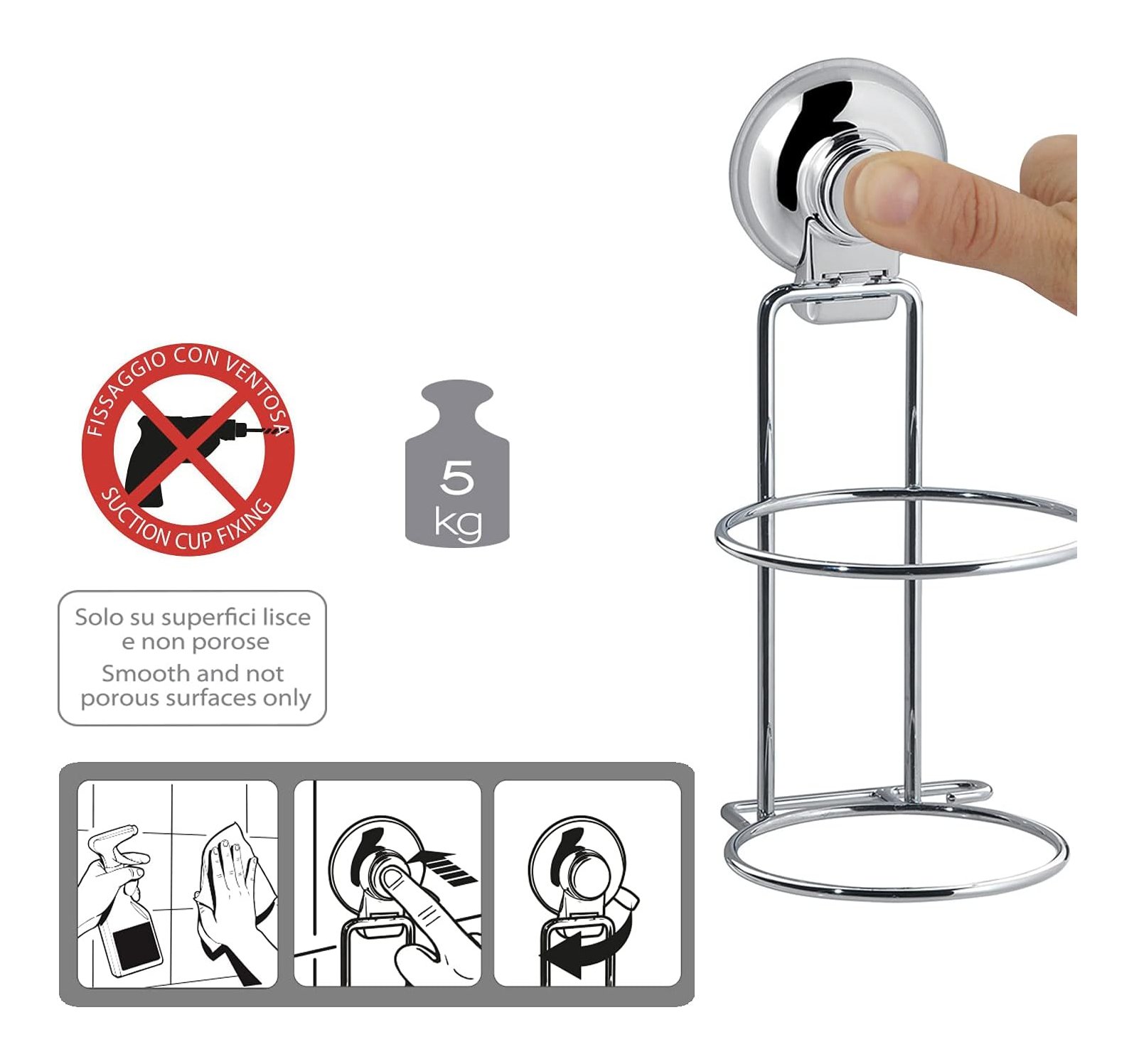 Porta asciugacapelli parete (10,7x12x22cm) HOT Cromo lucido HO52 13