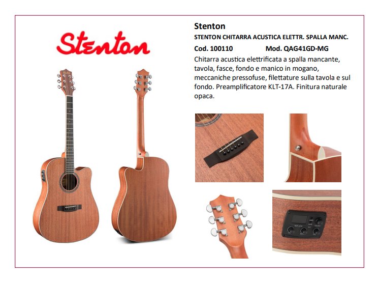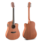 Chitarra acustica elettrificata a spalla mancante, tavola, fasce, fondo e manico in mogano, meccaniche pressofuse, filettature sulla tavola e sul fondo. Preamplificatore KLT-17A.
