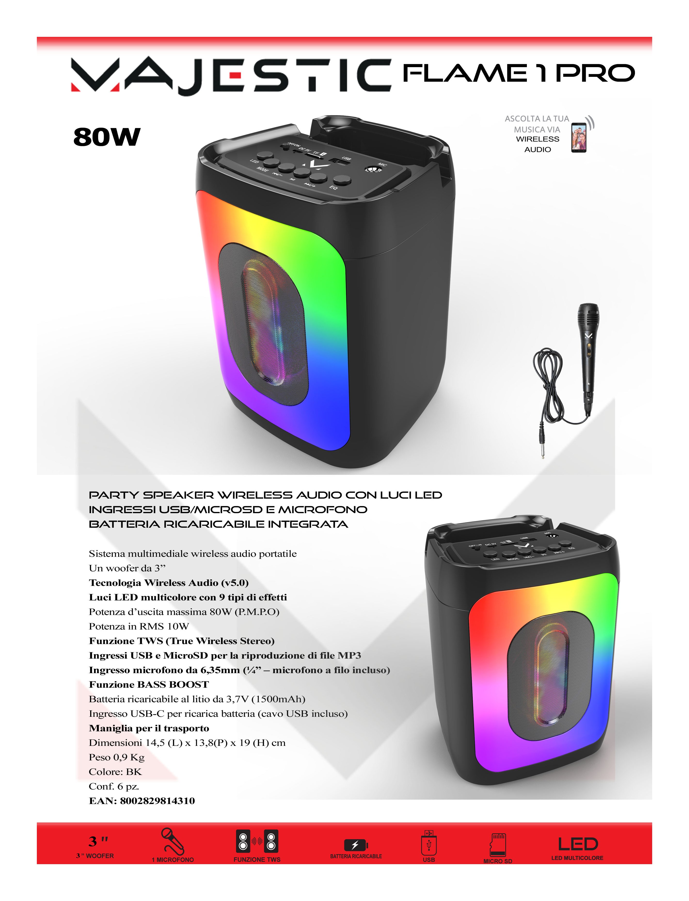 Cassa party FLAME 1 Pro Tws Black 80W 116301BK