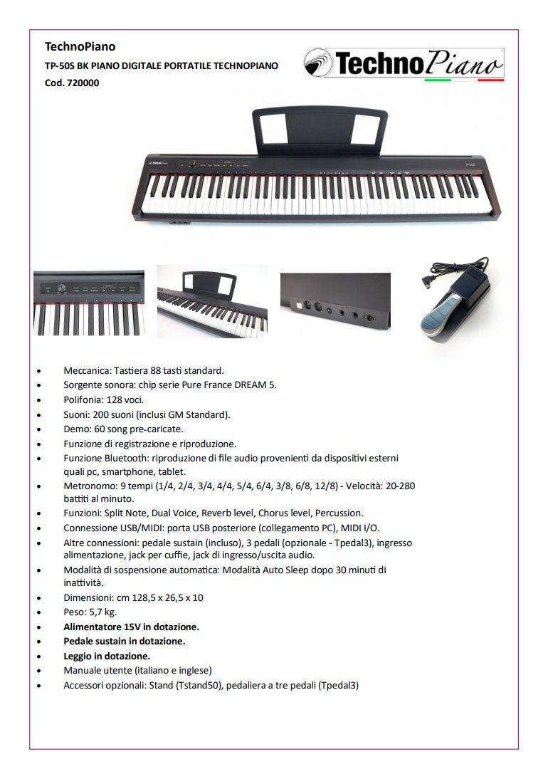 Tastiera musicale ( 88 tasti ) Polifonia 128 TP 50S Black 720000