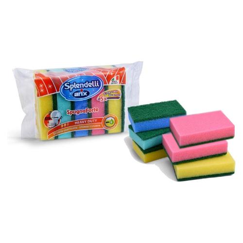 Morbida spugna con fibra abrasiva: rimuove lo sporco, residui di grasso ed unto da pentole, piatti, posate e da tutte le superfici non delicate. Grazie alla microporosità della spugna, il rilascio del detersivo è più graduale e con poche gocce pulisci più a lungo: ridotto consumo, maggiore risparmio, ambiente più felice! Vari colori per utilizzi diversi nei vari ambienti domestici.