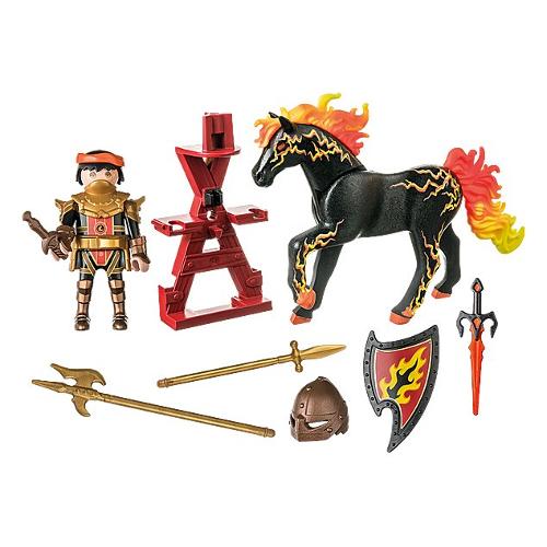 Tuffati nella mischia con il rovente Cavaliere di Fuoco di Burnham PLAYMOBIL. Anche Brody Burnham non vuole perdersi il torneo per dimostrare le sue abilità. Insieme al suo cavallo, ci cimenta in varie discipline per fare una bella figura al torneo. Sul supporto per armi può riporre spada, lancia, scudo ed elmo. Con funzioni intelligenti e personaggi stimolanti, la gamma Novelmore invita a emozionanti avventure cavalleresche. Il set include un personaggio PLAYMOBIL con scudo, elmo, alabarda, spada e altri extra. Scudo, elmo e armi possono essere posizionati sul supporto per le armi. Polsini, casco e fascia sono removibili.