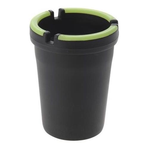 Il posacenere è realizzato in resistente materiale pvc ed è ideale per l'uso esterno, poiché la comoda copertura impedisce alla cenere di volare in giro. Il colore nero con bordi verdi fluorescenti accentati si adatta a qualsiasi tavolo o scaffale.