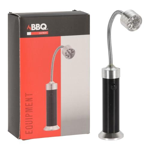 Lampada led per barbecue con 9 luci. Realizzata in lega di alluminio con base magnetica. Braccio flessibile in acciaio. Funzionamento con 3 batteria AAA (non incluse nella confezione)