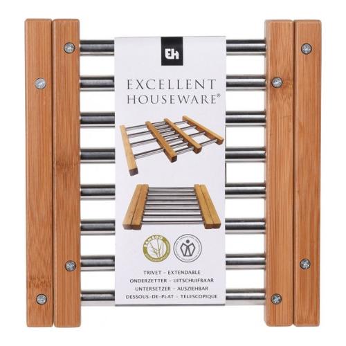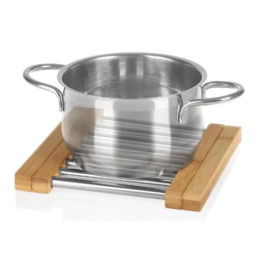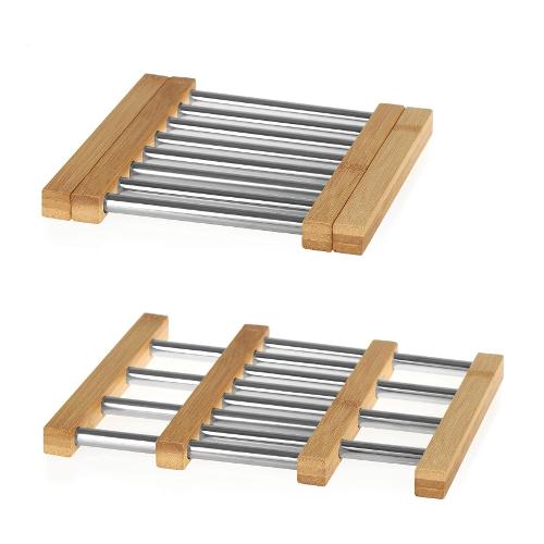 Un pad regolabile che si rivelerà un prodotto indispensabile in ogni cucina. Sarà ottimo come posto per una pentola calda, una padella o una teglia. Faciliterà la preparazione quotidiana delle cene e il servizio dei pasti. Grazie alla sua possibilità di regolazione, puoi adattarlo alle dimensioni del piatto. La tovaglietta è realizzata in resistente acciaio inossidabile e legno di bambù. Il suo stile minimalista e i colori tenui la rendono perfetta per l'interno di praticamente qualsiasi cucina.
